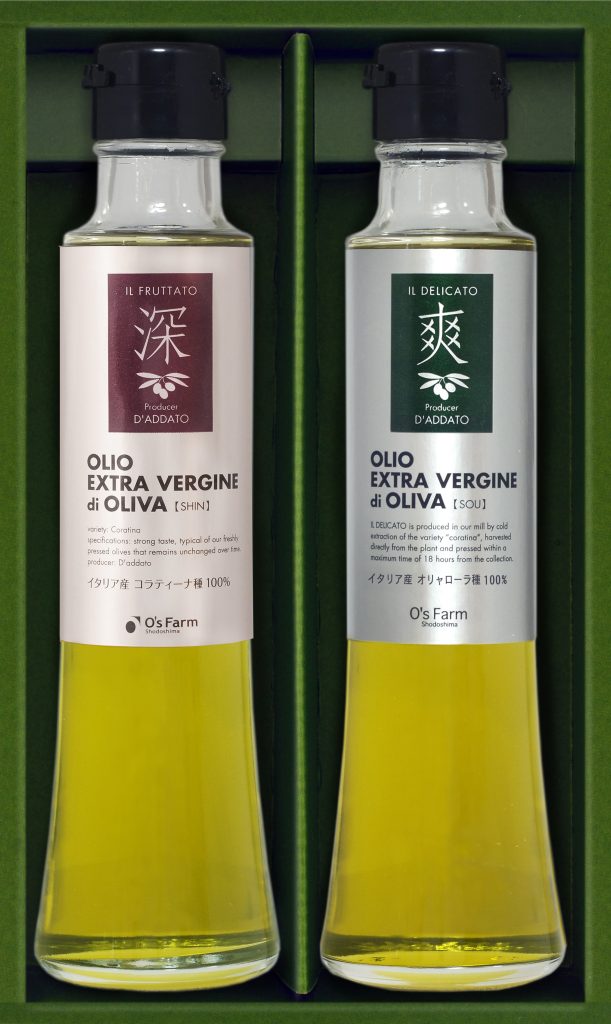 | 原材料名 | [エキストラバージンオリーブオイル【深】]食用オリーブ油 [エキストラバージンオリーブオイル【爽】]食用オリーブ油 |